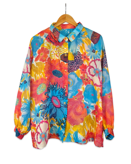 Zijden vintage blouse met herfstige bloemenprint - LNormale prijs €45,00 EURNormale prijsEenheidsprijs per-