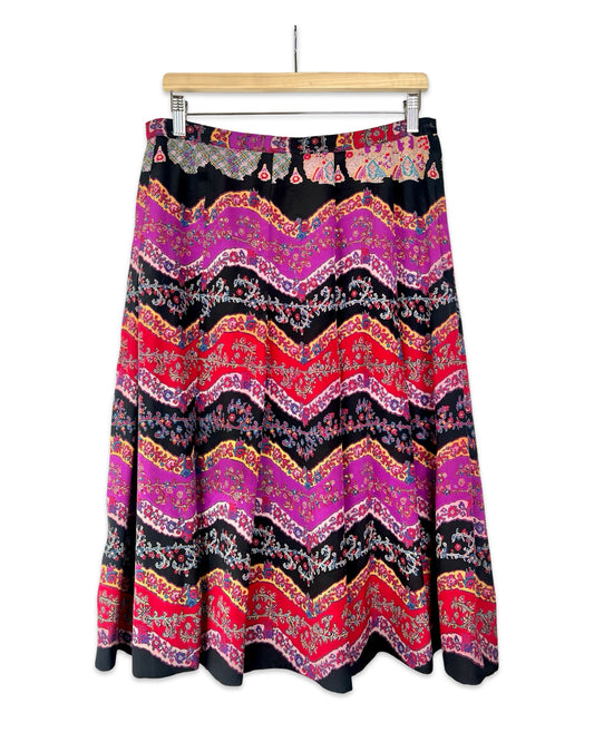 Uitverkocht UitverkochtZijden vintage midirok met print - M/LNormale prijs €65,00 EURNormale prijsEenheidsprijs per-
