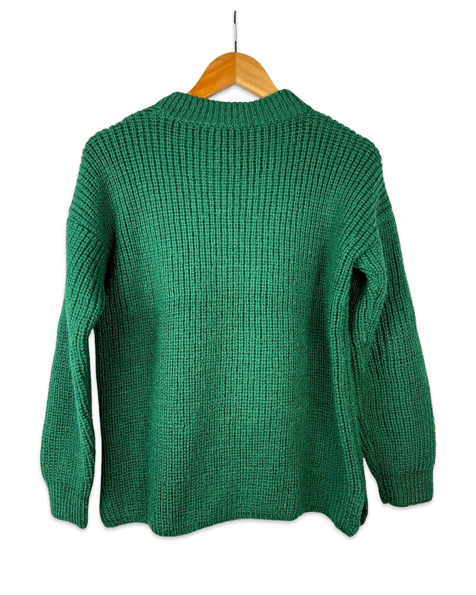 Prachtige handgebreide vintage trui in een mooie donkergroene kleur.