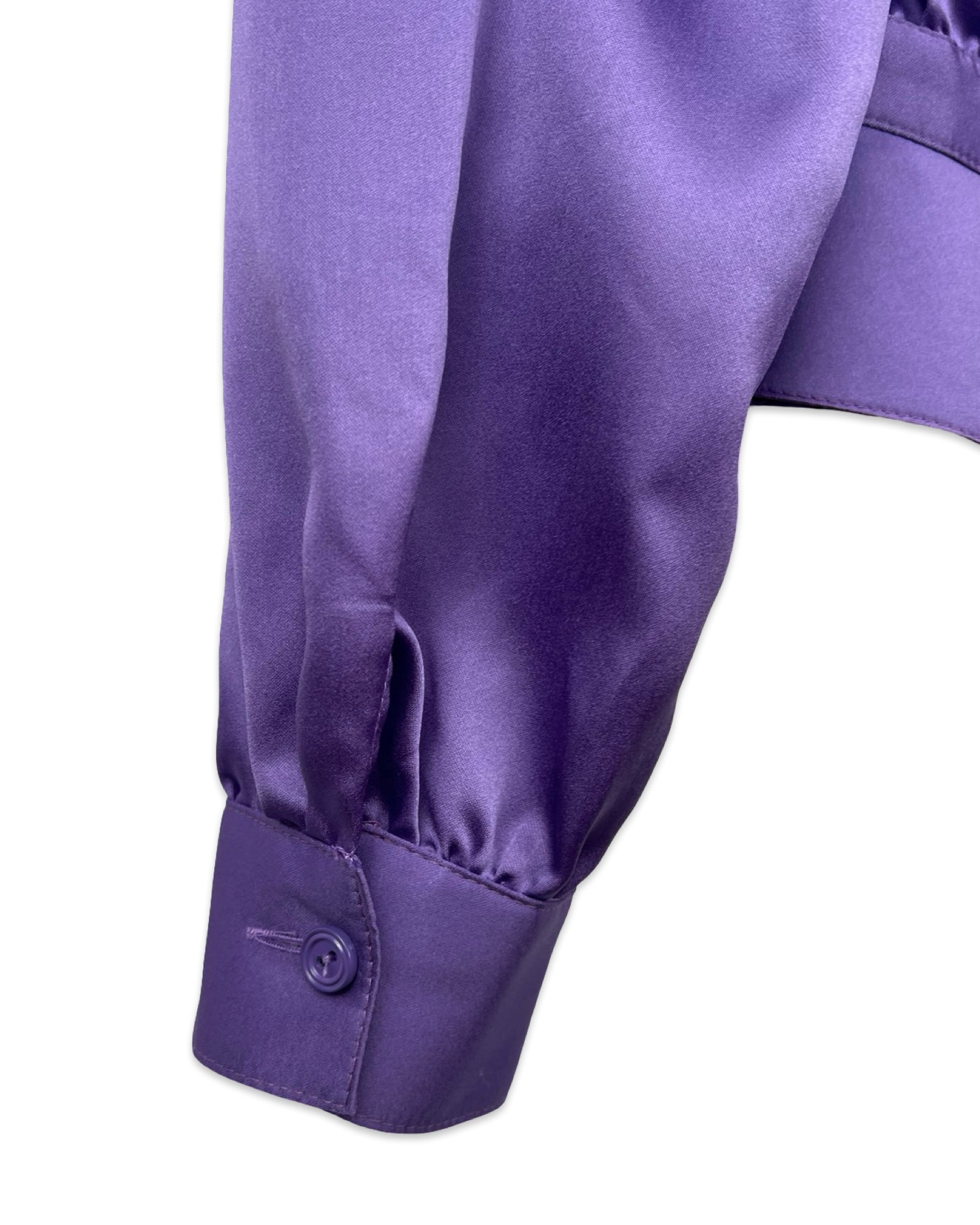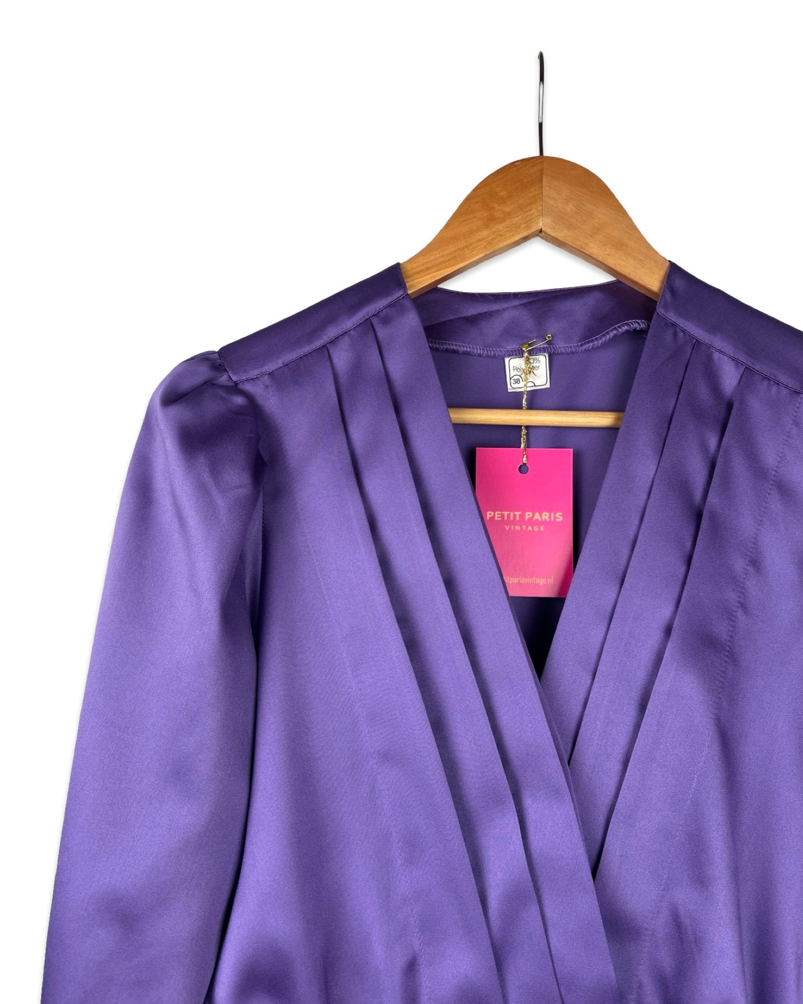 Vintage satijn blouse met overslag, pofmouwen en een schootje.