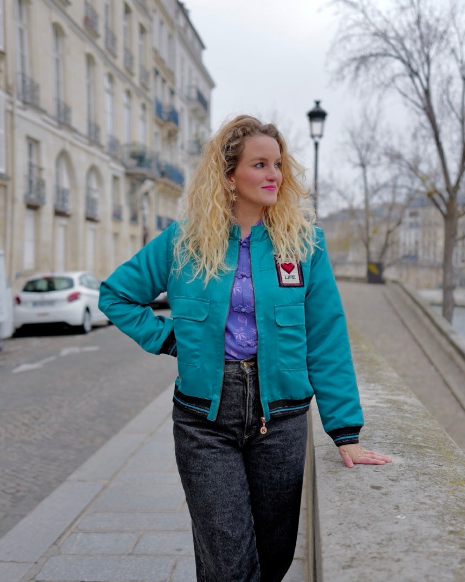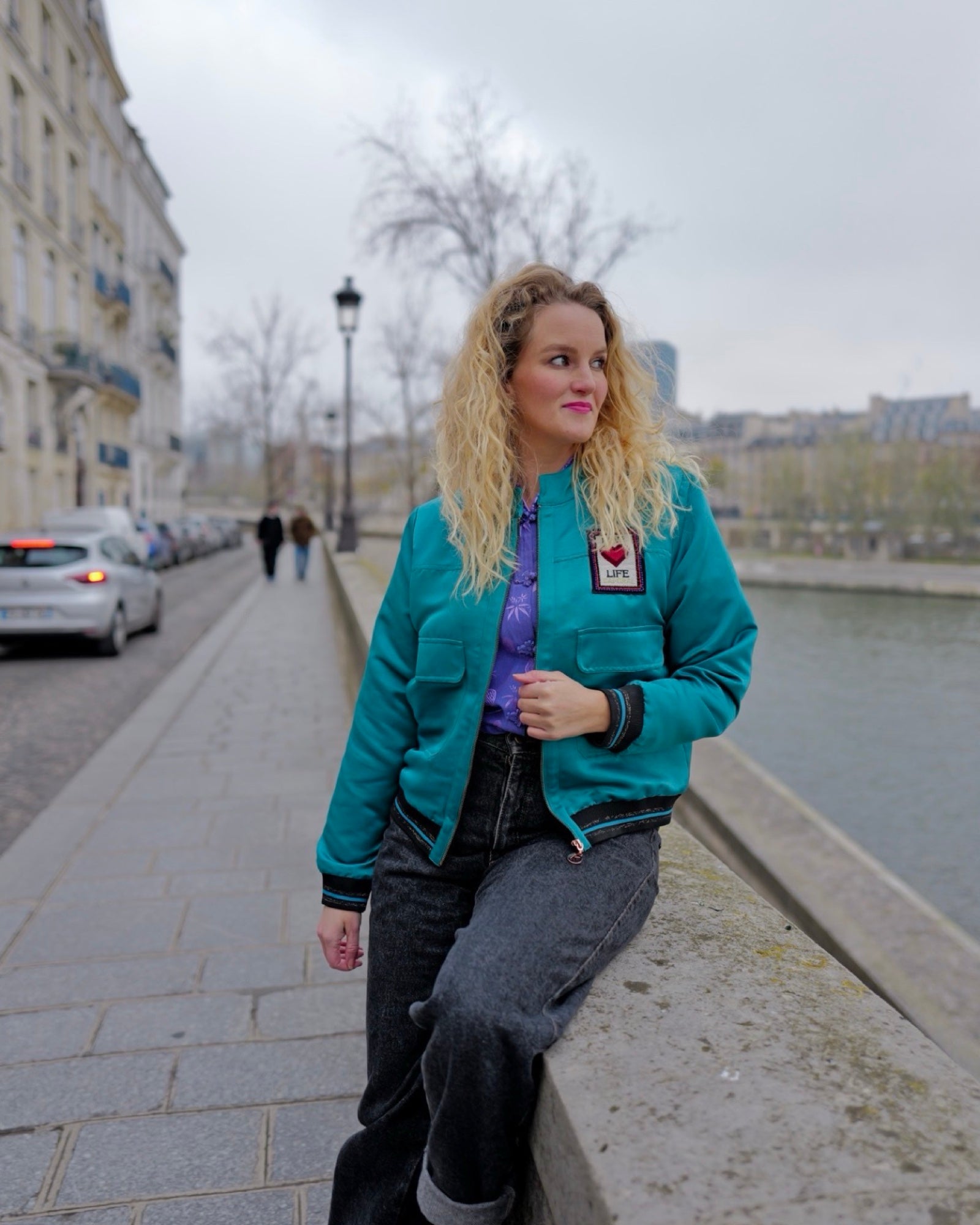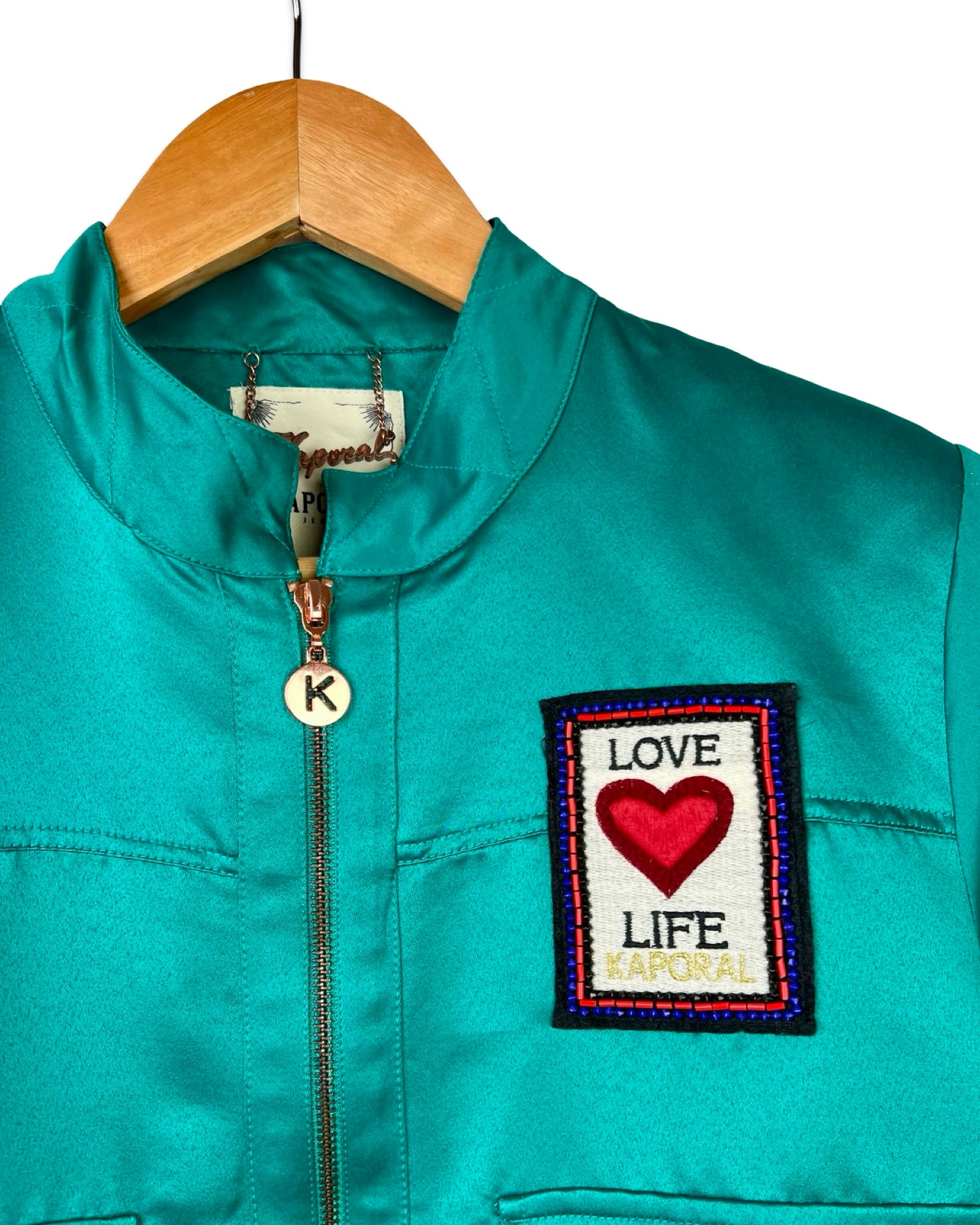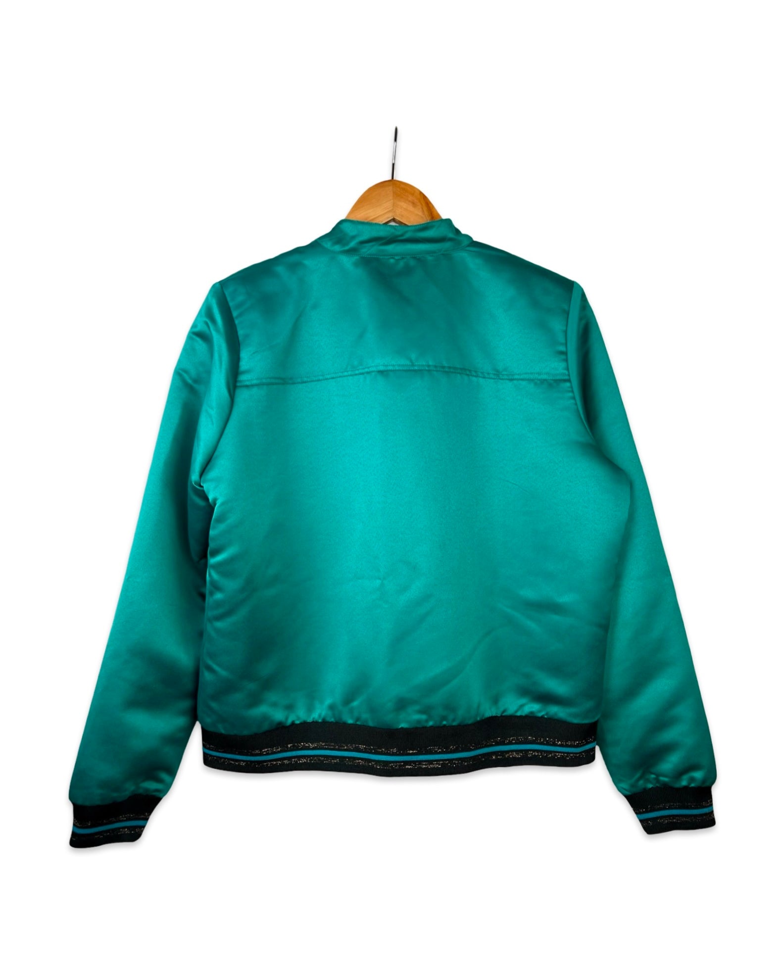 Satijnen bomberjack in een mooie diepe petrolkleur.