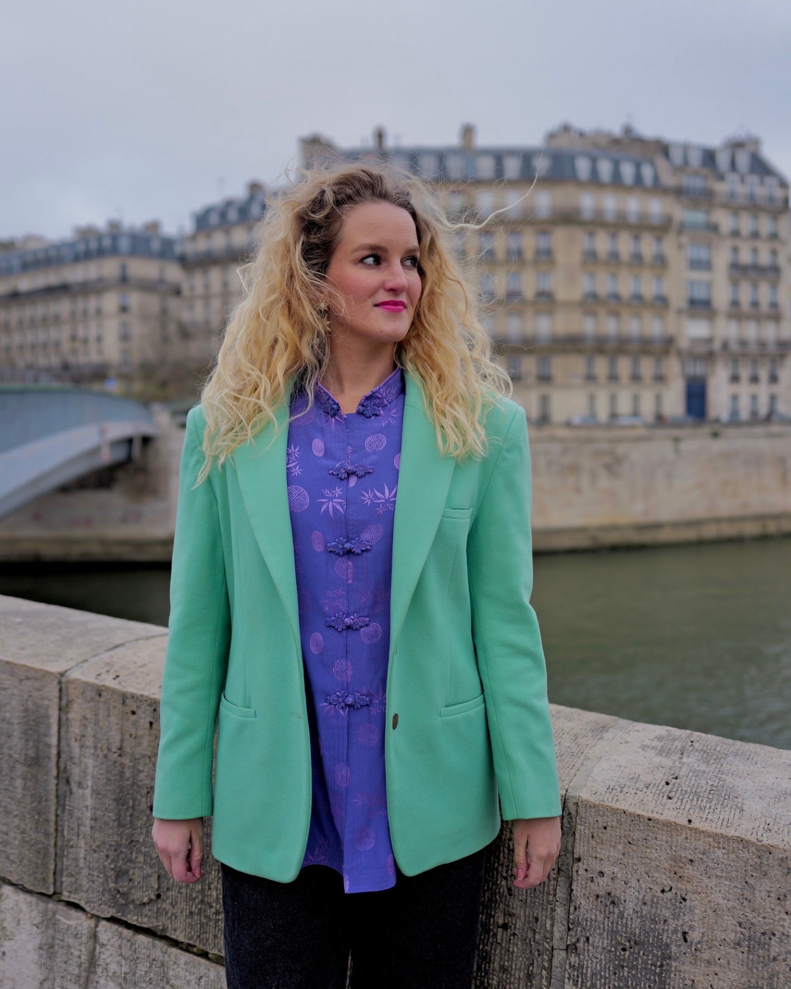 Prachtige mintgroene vintage blazer gemaakt van een hoogwaardige wolmix.
